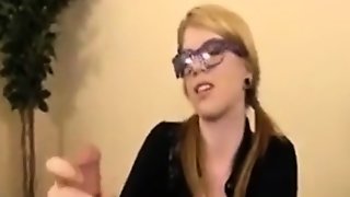 Slender Nymph Jerks Off And Sucks Fat Crooked Dick